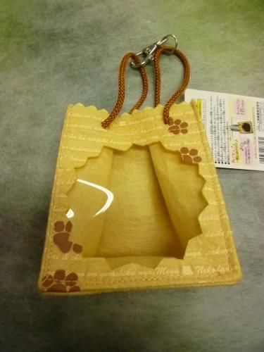ねこだんごが1匹入ります。商品名は紙袋ですが、フェルトとビニール製です。