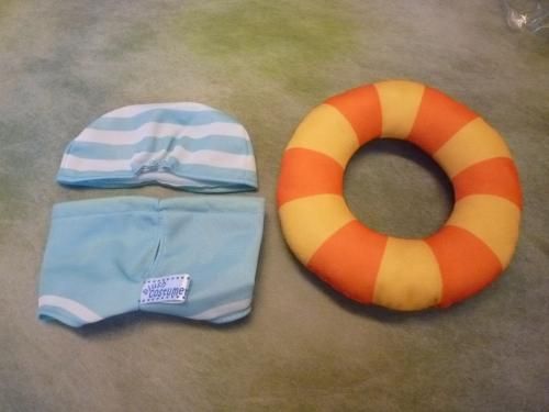 ※帽子、パンツ、浮輪の3点セットです。パンツにはシッポ用の穴が開いています。